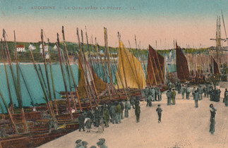 La motorisation engagée avant-guerre s'amplifie et le paysage maritime du port d'Audierne se transforme. Les cartes postales mettent l'accent sur cette modernisation alors que les artistes de la fin des années 1940 témoignent de leur intérêt pour une flottille de voiliers de travail encore présente.